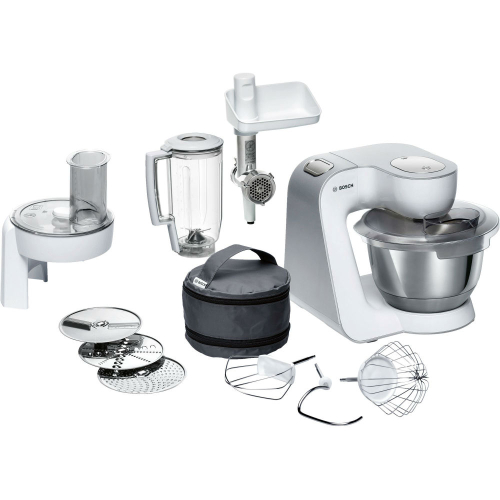 Тип: кухонна машина Потужність двигуна: 1000 Вт Кількість насадок: 8 Кількість швидкостей: 7 Кількість приводів: 3 Матеріал корпусу: пластик Об'єм основної чаші: 3.9 л Матеріал основної чаші: метал Матеріал чаші блендера: пластик Об'єм чаші блендера: 1.25 л Додаткові можливості: інтегрований відсік для зберігання кабелю, аксесуари придатні для миття у посудомийній машині Габарити (ВхШхГ): 28.2 х 28 х 27.1 см Габарити в упаковці (ВхШхГ): 59.5 х 39 х 35 см Вага: 7.106 кг Вага в упаковці: 8.38 кг Комплектація: кухонна машина, блендер, м'ясорубка, гак для тіста, віночок для збивання вершків, віночок для рідкого тіста, шатківниця з 3 дисками з нержавіючої сталі( двосторонній диск для нарізання скибочками (тонкі/товсті), диск-тертка, двосторонній диск для шаткування (великий/дрібний)), сумка для зберігання дрібних аксесуарів (віночків, дисків), прозора кришка на чашу з отвором для подавання інгредієнтів, DVD диск з рецептами, інструкція Колір виробника: Білий Країна-виробник: Словенія