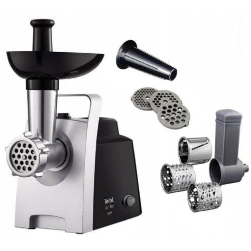 Потужність: 1400 Вт Продуктивність: 1,7 кг/хв Насадки: для ковбасних виробів, для тертки і шинкування, для «кеббе» Матеріал корпусу: пластик + метал Кількість решіток: 3 Особливості: реверс Оснащення: відділення для зберігання насадок, відділення для зберігання шнура, гумові ніжки Колір виробника: чорний/нержавіюча сталь Комплектація: м'ясорубка, 3 решітки для фаршу, 3 барабани (овочечистка, терка/шинкування), насадка для ковбасок, інструкція, гарантійний талон Країна-виробник: Китай
