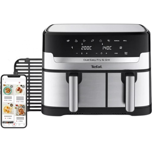 Об'єм: 8,3 (5,2 + 3,1) л Особливості: можна мити в посудомийній машинці, Smart/керування зі смартфона Потужність: 2700 Вт Додаткові характеристики: звуковий сигнал про завершення роботи Програми приготування: фрі, курка, овочі, риба, десерт, дегідратація, гриль, ручний режим Кількість програм: 8 Функції приготування: випікання, гриль на решітці, сушарка Керування: сенсорне Глибина: 41,8 см Висота: 30,5 см Ширина: 40,2 см Вага: 7,8 кг Комплектація: мультипіч, решітка-гриль та сіточка для меншої чаші, інструкція, гарантійний талон, упакування Колір виробника: металік Країна-виробник: Китай